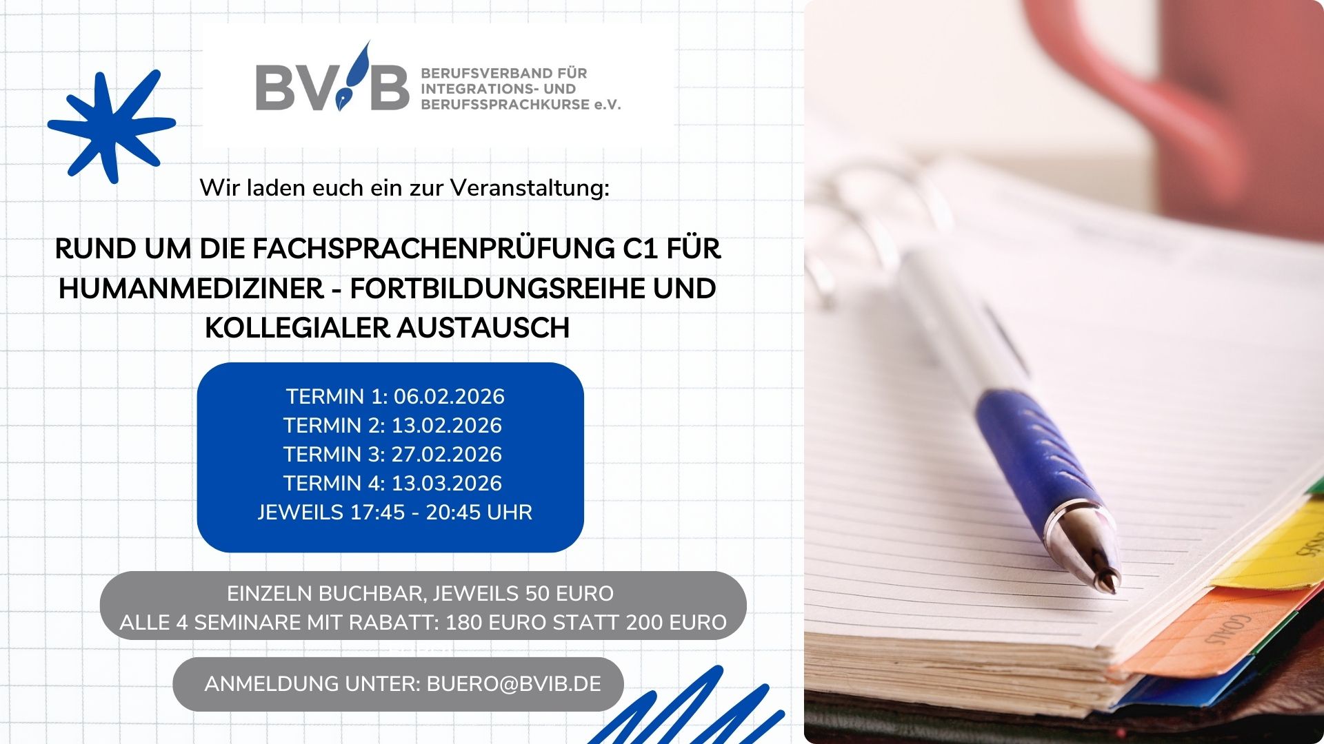 Anmeldung: buero@bvib.de, Kosten: kostenlos für Mitglieder