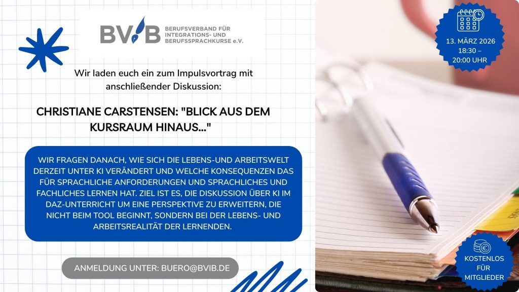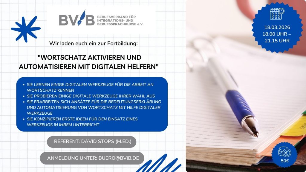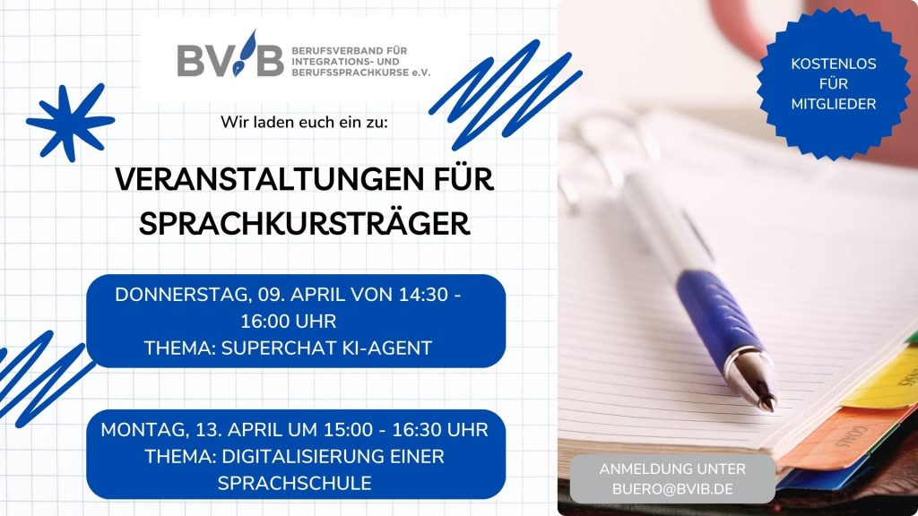 Mittwoch, den 18.03.2026 von 15 Uhr – 16 Uhr für Sprachkursträger